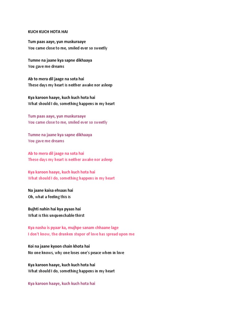 Kuch Kuch Hota Hai Tum Paas Aaye / Udit narayan, alka yagnik lyrics: