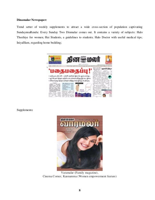 M.dinamalar Varamalar : Varamalar is bundled with dinamalar on sundays.