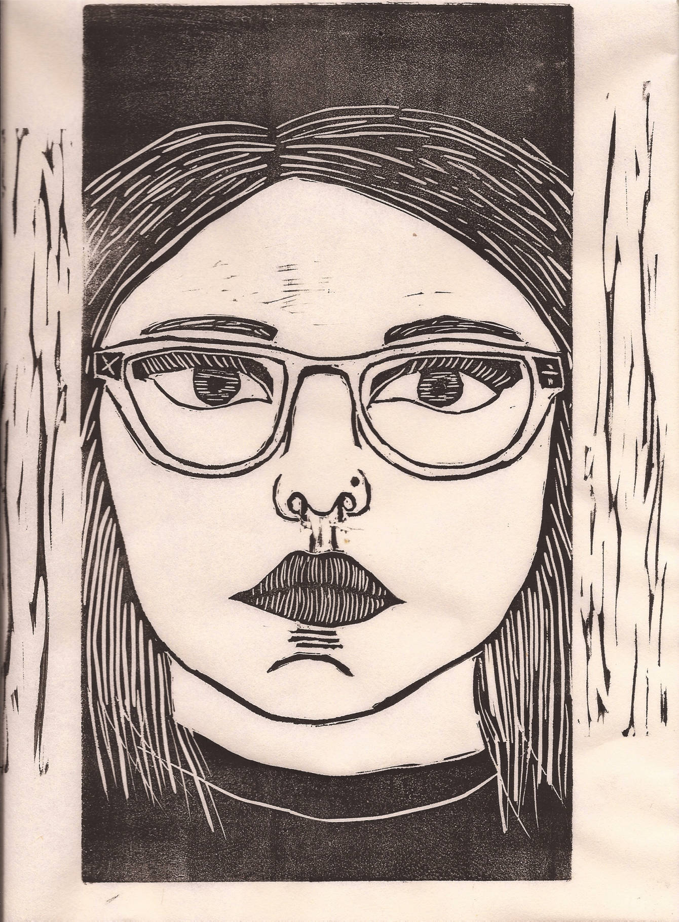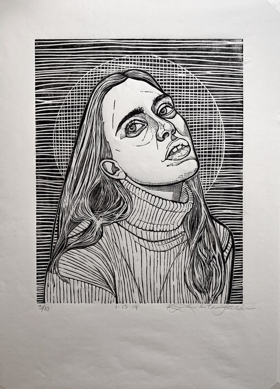 Relief Printmaking Portrait : Pieces of material are removed from the surface using sharp tools called gouges.